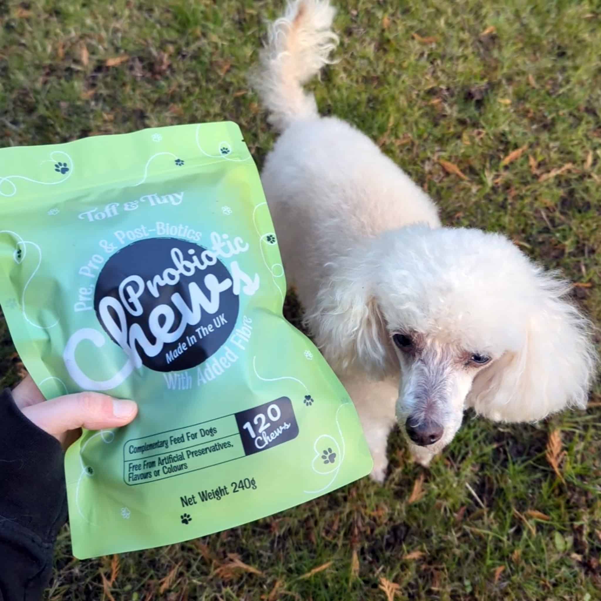 Our powerful probiotic chews combine 5 bacteria strains, prebiotics, and digestive enzymes to ease digestion, reduce bum-scooting, and soothe itchy ears.